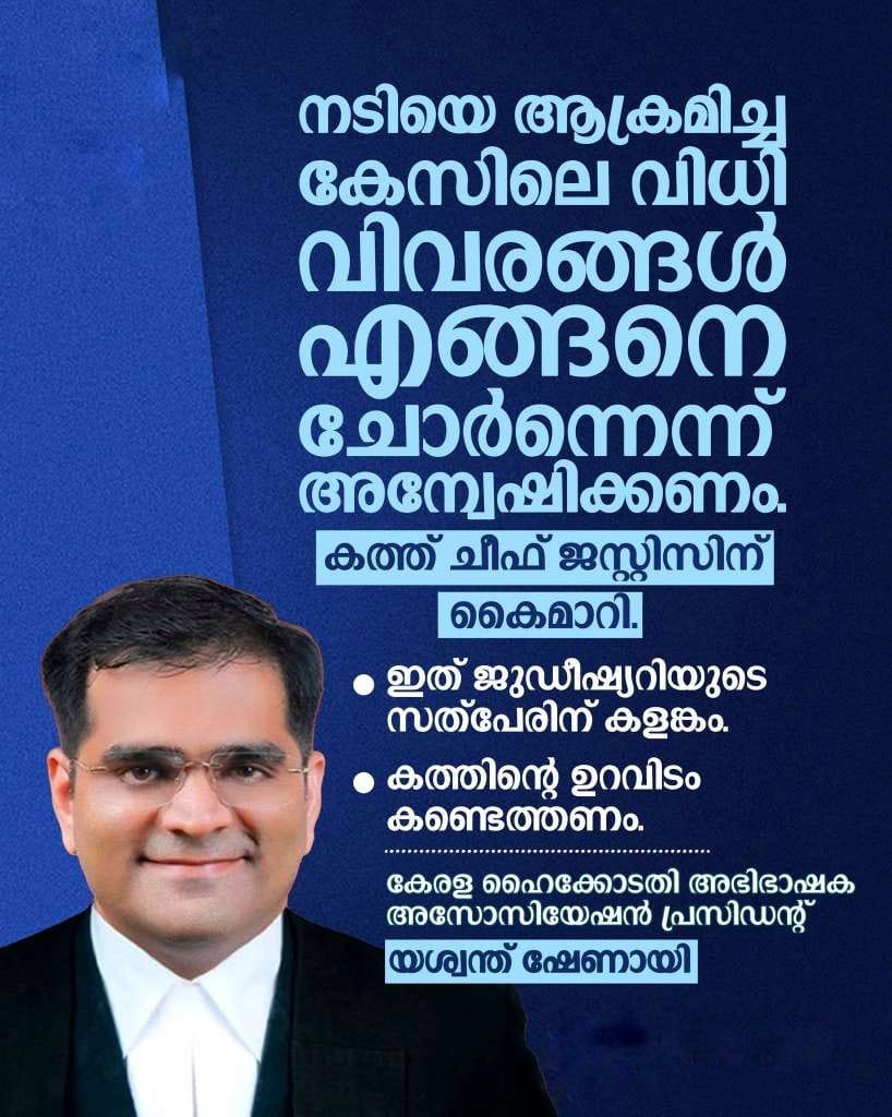 കൊച്ചി: നടിയെ ആക്രമിച്ച കേസിലെ വിധി ചോര്ന്നതായി കേരള ഹൈക്കോടതി അഭിഭാഷക അസോസിയേഷന് പ്രസിഡന്റ് യശ്വന്ത് ഷേണായി. വിധിയിലെ വിവരങ്ങള് അടങ്ങുന്ന ഒരു ഊമക്കത്ത് നേരത്തെ ലഭിച്ചിരുന്നതായാണ് ആരോപണം. ഇതുസംബന്ധിച്ച് യശ്വന്ത് ഷേണായി ചീഫ് ജസ്റ്റിസിന് പരാതി നല്കി. കത്തിന്റെ പകര്പ്പ്…