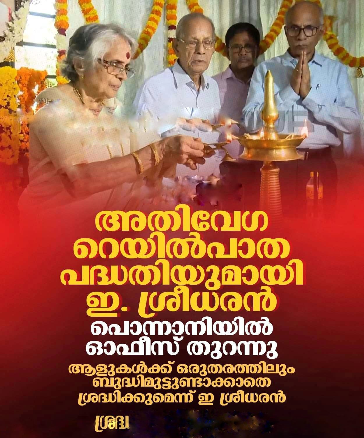 പൊന്നാനിയിൽ തുടക്കം; ഇ. ശ്രീധരന്റെ അതിവേഗ റെയിൽപാത ഓഫീസ് സജ്ജം