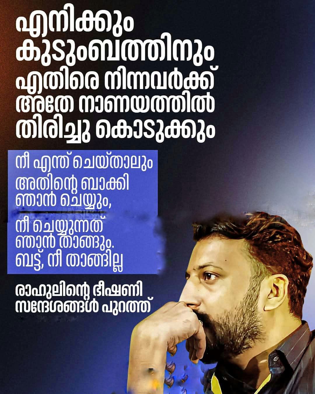 ചെയ്യുന്നത് നീ താങ്ങില്ല കുടുംബത്തെ എതിർത്തവർക്ക് രാഹുലിന്റെ ഭീഷണി സന്ദേശങ്ങൾ പുറത്ത്