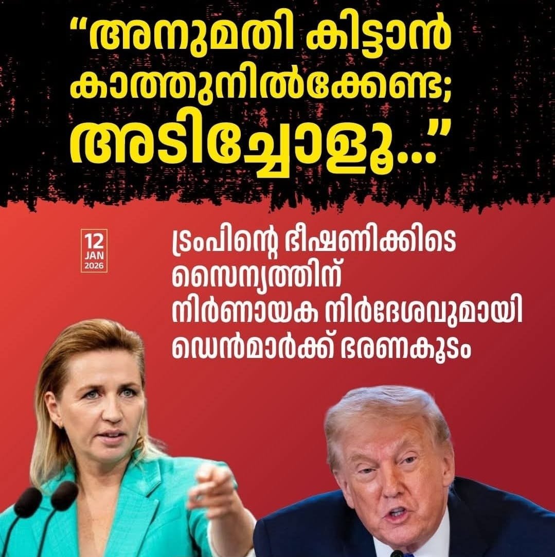 സ്വയംഭരണ പ്രദേശമായ ഗ്രീൻലാൻഡിനെ പിടിച്ചെടുക്കുമെന്ന അമേരിക്കൻ പ്രസിഡന്റ് ഡൊണാൾഡ് ട്രംപിന്റെ ആവർത്തിച്ചുള്ള ഭീഷണിയെത്തുടർന്ന് ഡെന്മാർക്കുമായുള്ള നയതന്ത്രബന്ധം അതീവ ഗുരുതരമായി. “ആദ്യം വെടിവെക്കുക, ചോദ്യങ്ങൾ പിന്നീട്” എന്ന 1952-ലെ പ്രതിരോധ ചട്ടം പാലിക്കാൻ ഡാനിഷ് സൈന്യത്തിന് നിർദ്ദേശം ലഭിച്ചതായാണ് വിവരം. ഗ്രീൻലാൻഡിന് മേൽ…