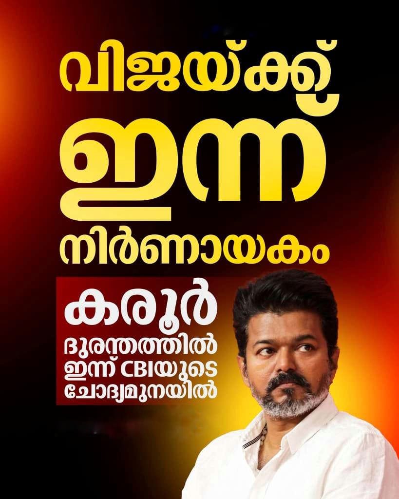 വിജയ്ക്ക് നിർണായകം: കരൂർ ദുരന്തത്തിൽ സിബിഐ ചോദ്യം ചെയ്യൽ ഇന്ന്
