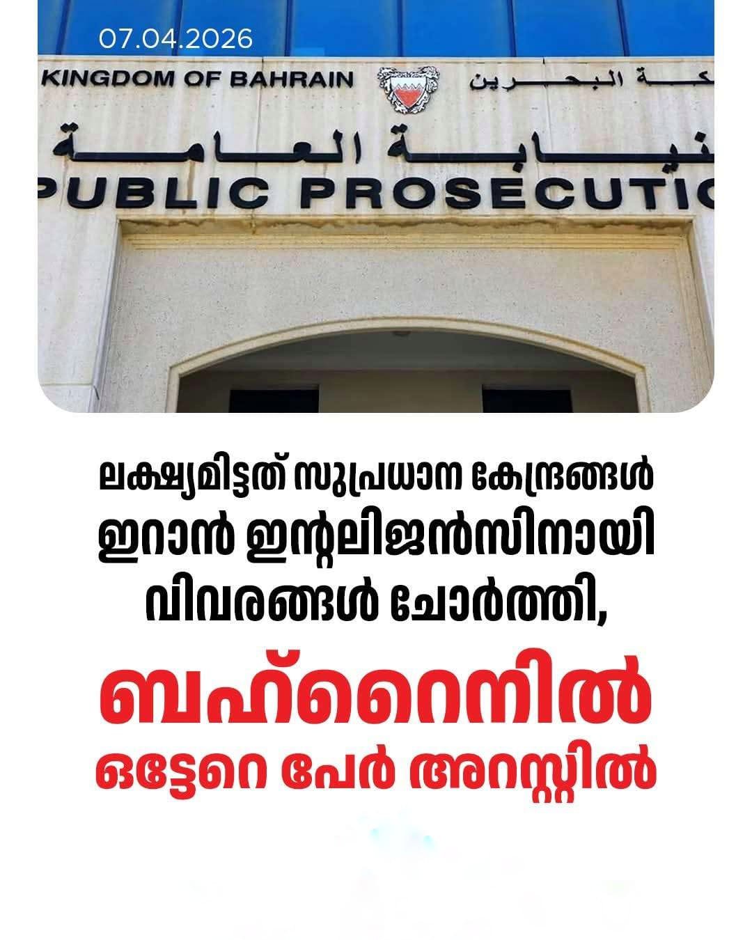 ഇറാൻ ചാരശൃംഖല തകർത്ത് ബഹ്റൈൻ; സുപ്രധാന വിവരങ്ങൾ ചോർത്തിയവർ പിടിയിൽ