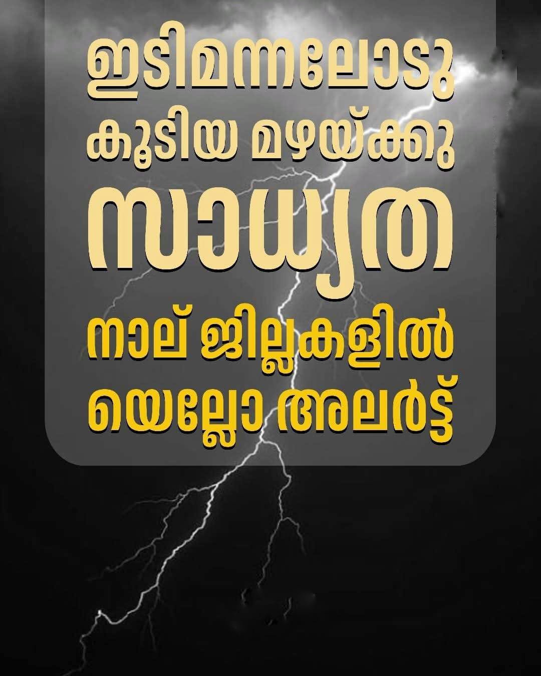 വേനൽമഴ തുടരുന്നു: നാല് ജില്ലകളിൽ യെല്ലോ അലർട്ട്