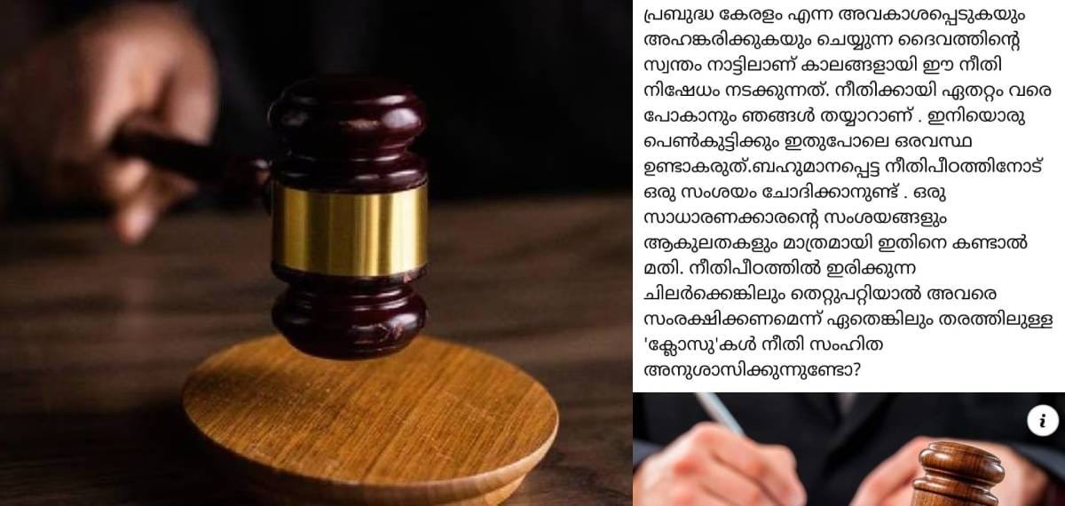 കൊച്ചി: നീതിപീഠത്തിൽ ഇരിക്കുന്ന ചിലർക്കെങ്കിലും തെറ്റുപറ്റിയാൽ അവരെ സംരക്ഷിക്കണമെന്ന് ഏതെങ്കിലും തരത്തിലുള്ള ‘ക്ലോസു’കൾ നീതി സംഹിത അനുശാസിക്കുന്നുണ്ടോയെന്ന ചോദ്യവുമായി നടിയെ ആക്രമിച്ച കേസിലെ അതിജീവിതയുടെ സഹോദരൻ.