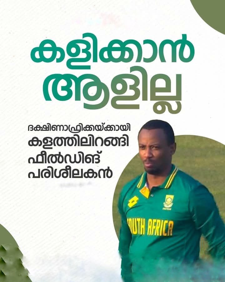 പാകിസ്താൻ, ദക്ഷിണാഫ്രിക്ക, ന്യൂസിലാൻഡ് ടീമുകൾ ഉൾപ്പെടുന്ന ത്രിരാഷ്ട്ര പരമ്പരയിൽ ദക്ഷിണാഫ്രിക്കയ്ക്കായി കളത്തിലിറങ്ങിൽ ഫീൽഡിങ് പരിശീലകൻ വാൻഡിലെ ഗ്വാവു. കഴിഞ്ഞ ദിവസം ന്യൂസിലാൻഡിനെതിരായ മത്സരത്തിലാണ് ​ഗ്വാവുവിന് ഫീൽഡിങ്ങിനായി കളത്തിലിറങ്ങേണ്ടി വന്നത്.