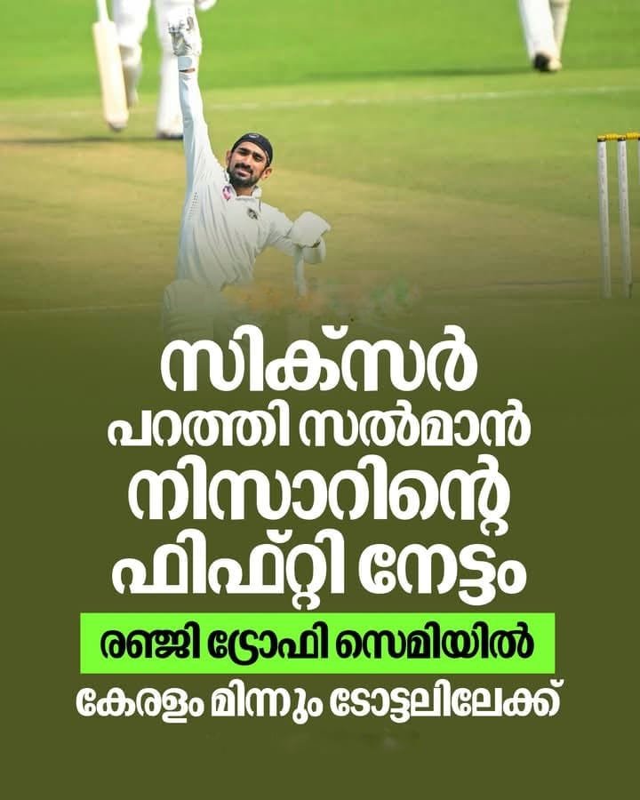 kerala #RanjiTrophy #indiancricketteam Post navigationചാംപ്യൻസ് ട്രോഫി ടൂര്ണമെന്റിന് നാളെ തുടക്കമാകാനിരിക്കെ ഭാര്യയേയോ കുടുംബത്തേയോ കൂടെ കൂട്ടാനാവില്ലെന്ന നിബന്ധനയില് ഇളവ് അനുവദിച്ച് ബിസിസിഐ കേരളത്തിന്റെ പ്രതിരോധം തകര്ത്ത് ഗുജറാത്ത് ഒന്നാം ഇന്നിംഗ്സില് 457ന് ഓള് ഔട്ട്