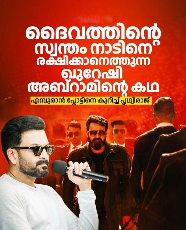 PrithvirajSukumaran #Empuraan #mohanlal #malayalamcinema #mollywood Post navigationഉണ്ണി മുകുന്ദനെ വച്ച് ആരെങ്കിലും സിനിമയെടുക്കുമോ എന്ന് ചോദിച്ചവര്ക്ക് നിര്മാതാവിന്റെ മറുപടി ജയന് പറഞ്ഞത് വ്യക്തിപരമായ അഭിപ്രായമല്ല സംഘടനയുടെ അഭിപ്രായമാണ് മോഹന്ലാലിനോടും മമ്മൂട്ടിയോടും സംസാരിച്ചതിന്റെ അടിസ്ഥാനത്തിലാണ് അഭിപ്രായ പ്രകടനം നടത്തിയത്