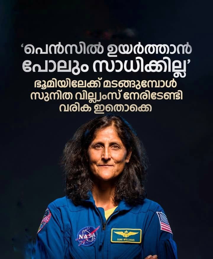 ഭൂമിയിലേക്ക് മടങ്ങുമ്പോള് ഗുരുത്വാകര്ഷണം ഏറ്റവും വലിയ വെല്ലുവിളിയാകുമെന്ന് വെളിപ്പെടുത്തി സുനിത വില്ല്യംസ്