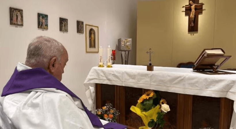 റോമിലെ ജെമെല്ലി ആശുപത്രിയിലെ ചാപ്പലിൽ നിന്നും ഫ്രാൻസിസ് മാർപാപ്പയുടെ ഫോട്ടോ വത്തിക്കാൻ പുറത്തുവിട്ടു. ദിവ്യബലി അർപ്പിക്കുമ്പോൾ ധരിക്കുന്ന സ്റ്റോളും ധരിച്ച് ഇരിക്കുന്ന 88കാരനായ മാർപാപ്പയാണ് ചിത്രത്തിലുള്ളത്. ന്യൂമോണിയ ബാധിച്ച് ഫെബ്രുവരി 14 ന് ആശുപത്രിയിൽ പ്രവേശിപ്പിക്കപ്പെട്ട ശേഷം വത്തിക്കാനിൽ നിന്ന് പുറത്തുവരുന്ന…