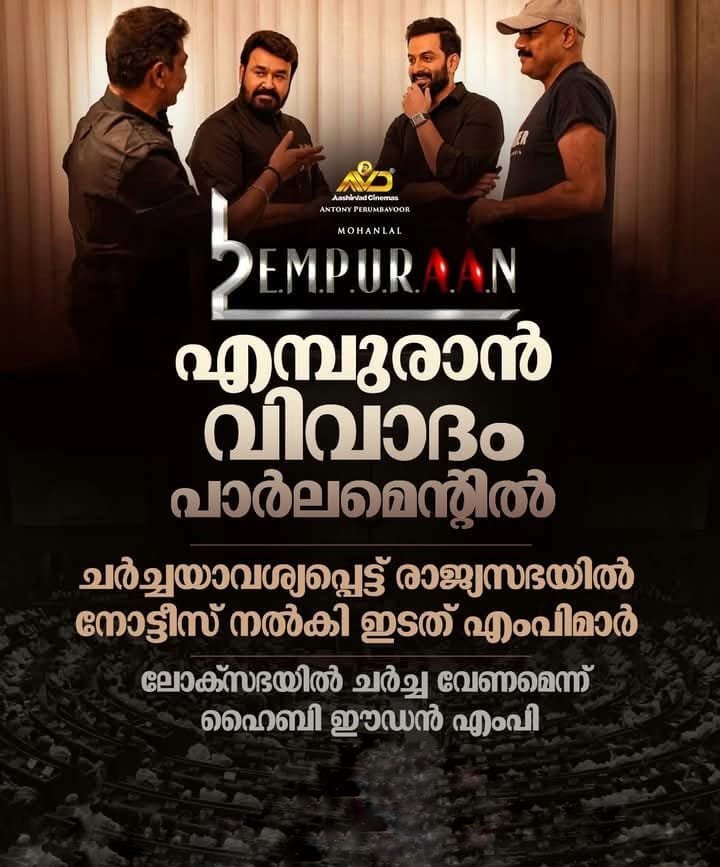 Empuraan #PrithvirajSukumaran #mohanlal #parliament #RajyaSabha Post navigationനേരത്തെ മമ്മൂട്ടിയുടെ ജിബിലി ലുക്കിലുള്ള ചിത്രങ്ങൾ സോഷ്യൽ മീഡിയയിൽ വൈറലായിരുന്നു ഇന്ത്യ ഒരുത്തന്റെയും തന്തയുടെ വകയല്ല ഇത് കേരളമാണ്