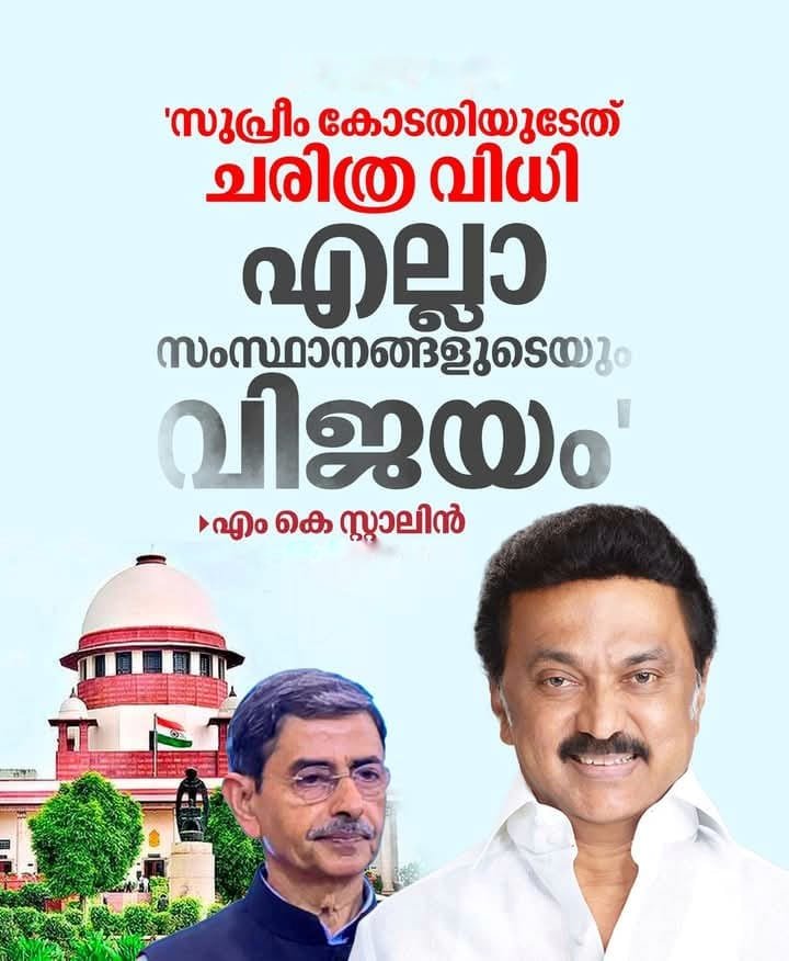 TamilNadu #SupremeCourt #MKStalin #Governor Post navigationമന്ത്രി നെഹ്റുവിന്റെയും എംപിയായ മകന്റെയും വീടുകളിൽ ഇ.ഡി റെയ്ഡ് ശ്രീനാരായണ ഗുരുവിന്റെ പേര് ഉച്ചരിക്കാൻ ലീഗിന് അവകാശമില്ലെന്നും കെ സുരേന്ദ്രൻ പറഞ്ഞു