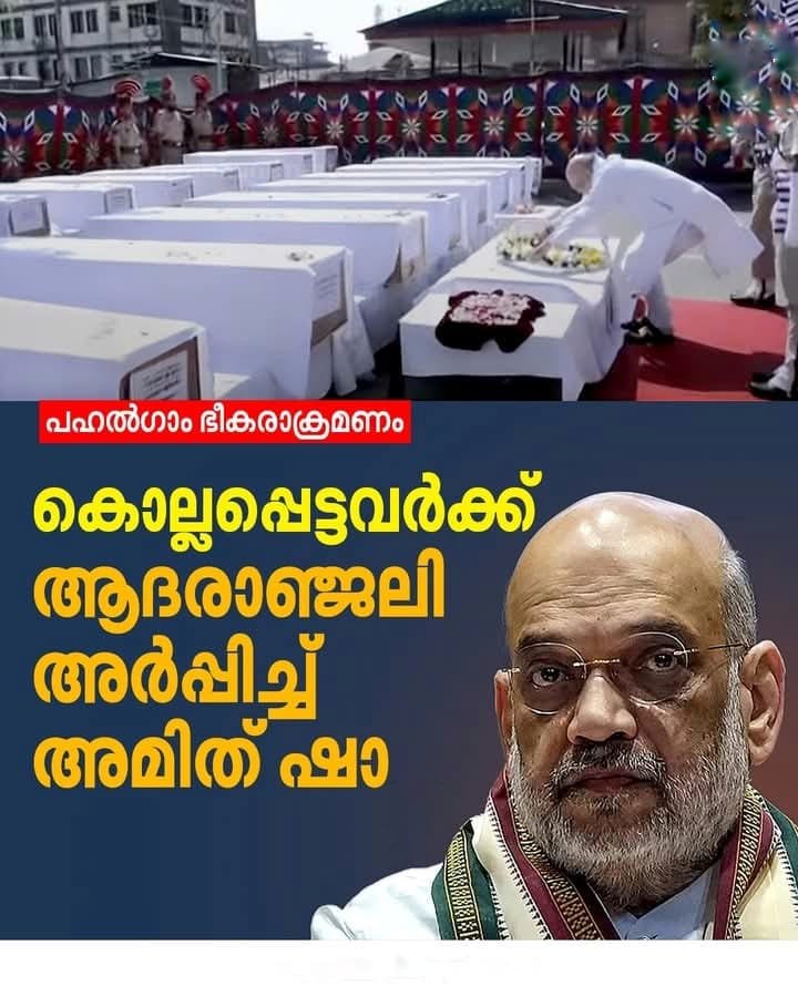 PahalgamTerrorAttack #JammuAndKashmir #IndianArmy #AmitShah Post navigationപഹൽഗാം ഭീകരാക്രമണം എയർ ഇന്ത്യയും ഇൻഡിഗോയും ഇന്ന് ശ്രീനഗറിൽ നിന്ന് രണ്ട് അധിക വിമാന സർവീസുകൾ നടത്തും തീവ്രവാദം ജയിക്കാൻ അനുവദിക്കരുത് അപലപനം മാത്രം പോര, നീതി നടപ്പാക്കണം