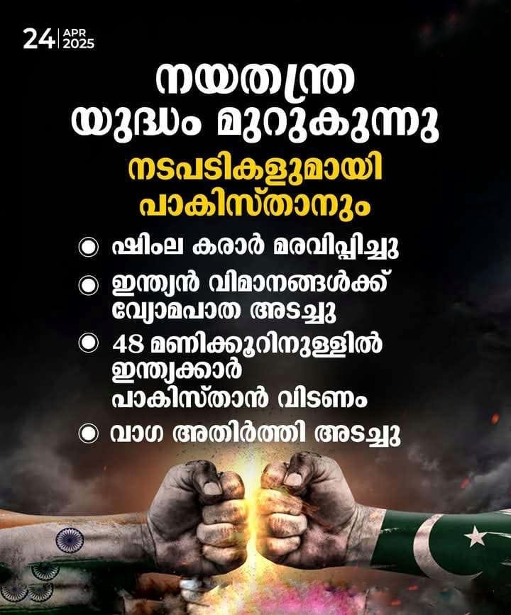 pahalgamkashmir #Pakistan Post navigationനാഷണല് ഹെറാള്ഡ് പത്രവുമായി ബന്ധപ്പെട്ട കള്ളപ്പണം വെളുപ്പിക്കല് കേസില് സോണിയയെ ഒന്നാം പ്രതിയാക്കിയും രാഹുല് ഗാന്ധിയെ രണ്ടാം പ്രതിയാക്കിയുമാണ് കുറ്റപത്രം സമര്പ്പിച്ചിരിക്കുന്നത് ഒരു പുണ്യ പുരുഷൻ്റെ അവസാന നിമിഷത്തിന് സാക്ഷിയാകുവാൻ ലോകം തന്നെ വത്തിക്കാനിലേക്ക് എത്തിയിരിക്കുകയാണ് ബസേലിയോസ് ക്ലീമിസ് കാതോലിക്കാ ബാവാ