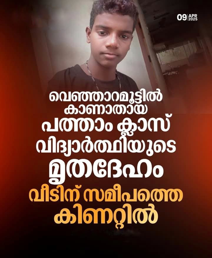 തിരുവനന്തപുരം: വെഞ്ഞാറമൂട്ടിൽ കാണാതായ പത്താം ക്ലാസ് വിദ്യാർത്ഥി മരിച്ച നിലയിൽ. വെഞ്ഞാറമൂട് മുളങ്കുന്നം ലക്ഷംവീട്ടിൽ അർജുനെ വീടിന് സമീപത്തെ കിണറ്റിലാണ് മരിച്ച നിലയിൽ കണ്ടെത്തിയത്. അനിൽകുമാർ-മായ ദമ്പതികളുടെ മകനാണ് അർജുൻ. മകനെ കാണാനില്ലെന്ന് ചൂണ്ടിക്കാട്ടി മാതാപിതാക്കൾ പൊലീസിൽ പരാതി നൽകിയിരുന്നു. ഈമാസം…