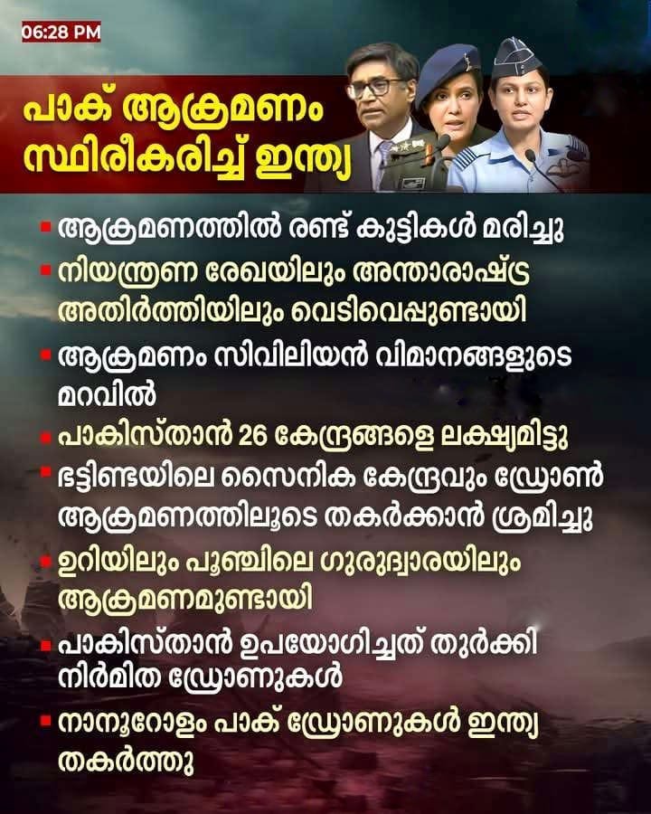 India #IndianArmy #Pakistan #GovernmentOfIndi Post navigationപാകിസ്ഥാനിൽ 39 ഇടത്ത് നടന്ന ആക്രമണത്തിൻ്റെ ഉത്തരവാദിത്തം ബിഎൽഎ ഏറ്റെടുത്തു ദൃശ്യങ്ങൾ പ്രചരിക്കുന്നു ആണവ ഭീഷണി ഉയർത്തുന്നതിൽ നിന്ന് പാകിസ്താൻ പിന്മാറി പാക് പ്രതിരോധ മന്ത്രി
