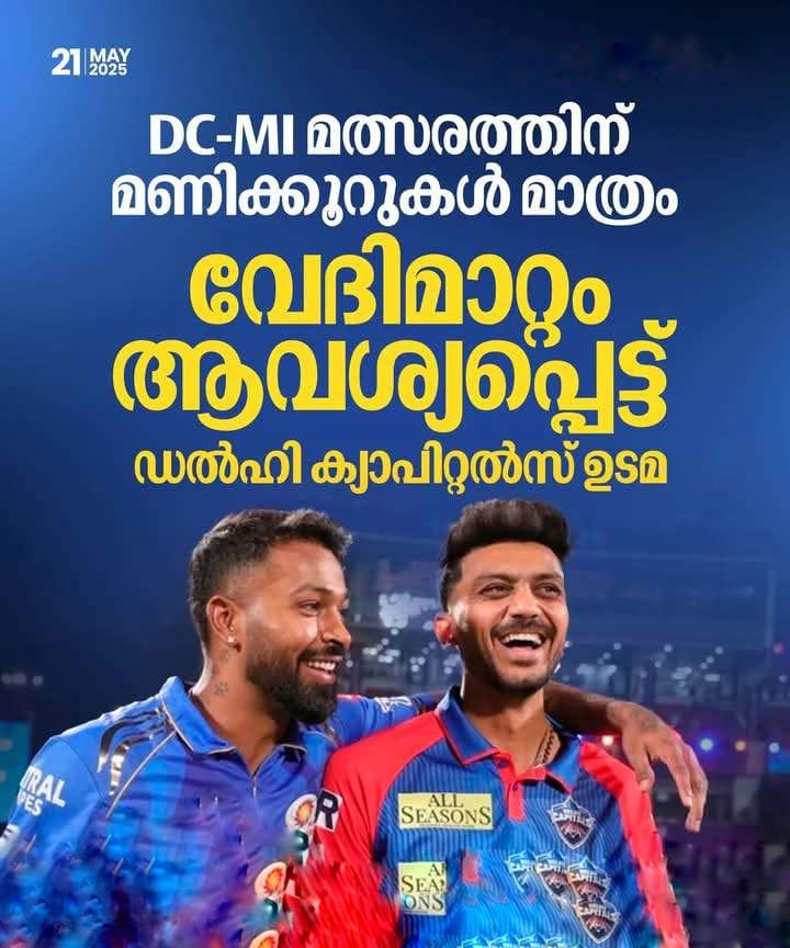DC-MI മത്സരത്തിന് മണിക്കൂറുകൾ മാത്രം വേദിമാറ്റം ആവശ്യപ്പെട്ട് ഡൽഹി ക്യാപിറ്റൽസ് ഉടമ
