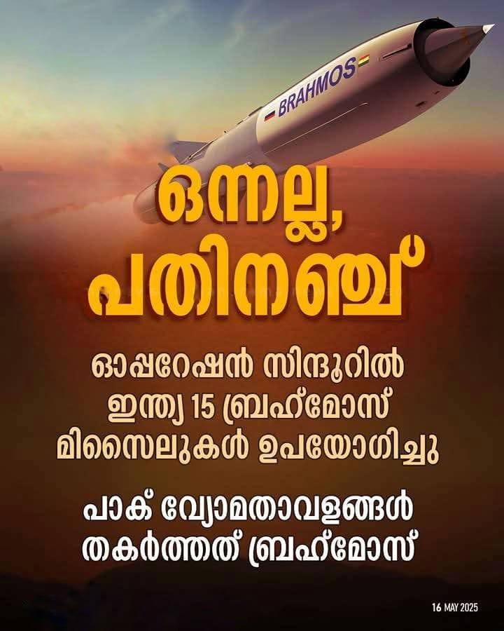 പാക് വ്യോമതാവളങ്ങള് ചുട്ടെരിച്ചത് ബ്രഹ്മോസ് 15 മിസൈലുകള് തൊടുത്തെന്ന്