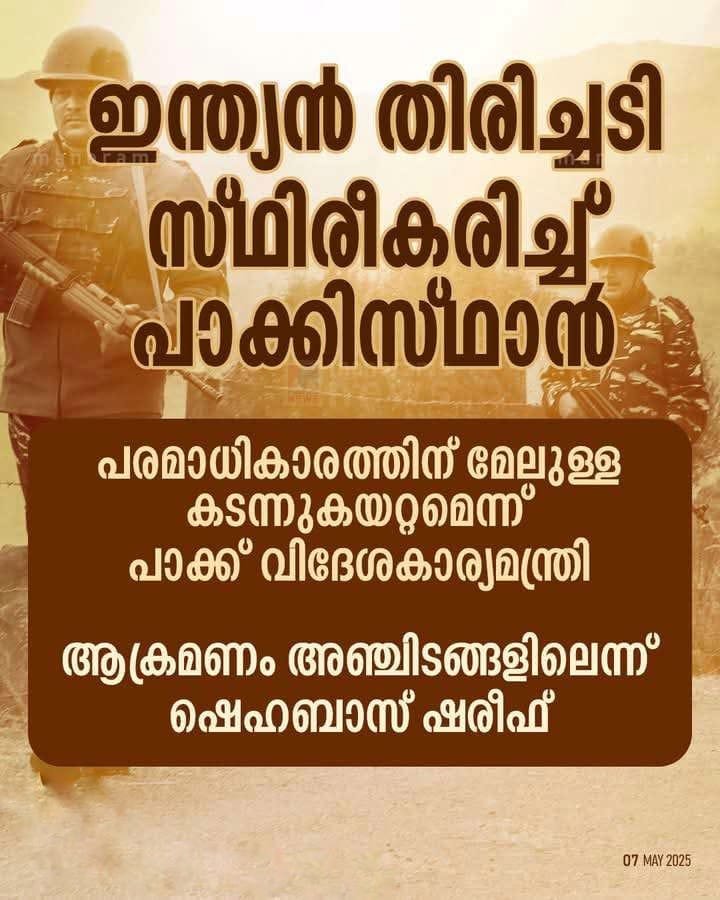 അഞ്ചിടങ്ങളില് ആക്രമണം നടത്തിയെന്ന് ഷെഹബാസ് ഷരീഫ് ശക്തമായി തിരിച്ചടിക്കുമെന്ന് പാക്കിസ്ഥാന്