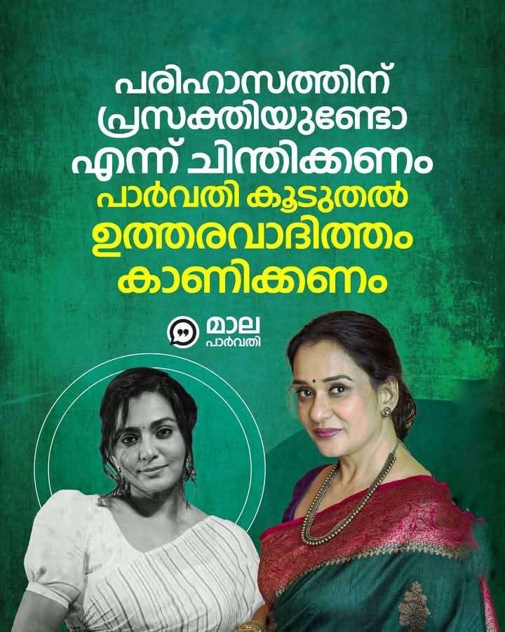 പരിഹാസത്തിന് പ്രസക്തിയുണ്ടോ എന്ന് ചിന്തിക്കണം പാര്വതി കൂടുതല് ഉത്തരവാദിത്തം കാണിക്കണംമാല പാര്വതി