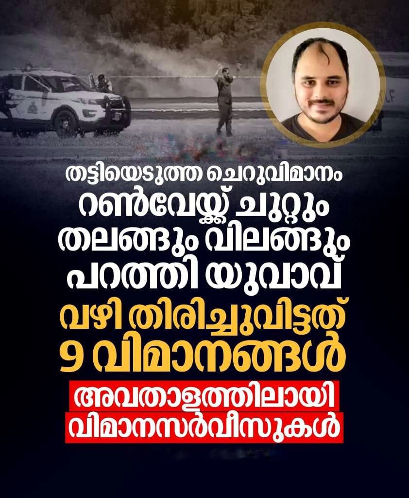 അമിതവേഗതയിലും നിയമം കാറ്റില് പറത്തിയും ചിലര് റോഡില് ഗതാഗതക്കുരുക്ക് ഉണ്ടാക്കുന്നത് പോലെ ആകാശത്ത് വിമാനം തലങ്ങും വിലങ്ങും പറത്തി വ്യോമഗതാഗത്തെ ആകെ അവതാളത്തിലാക്കി യുവാവ്. കാനഡയില് ചെറുവിമാനം തട്ടിയെടുത്ത് നഗരത്തിലെ ഏറ്റവും തിരക്കേറിയ വിമാനത്താവളത്തിന് മുകളിലൂടെ പറത്തിയതിന് യുവാവിനെ പൊലീസ് അറസ്റ്റ് ചെയ്തു.
