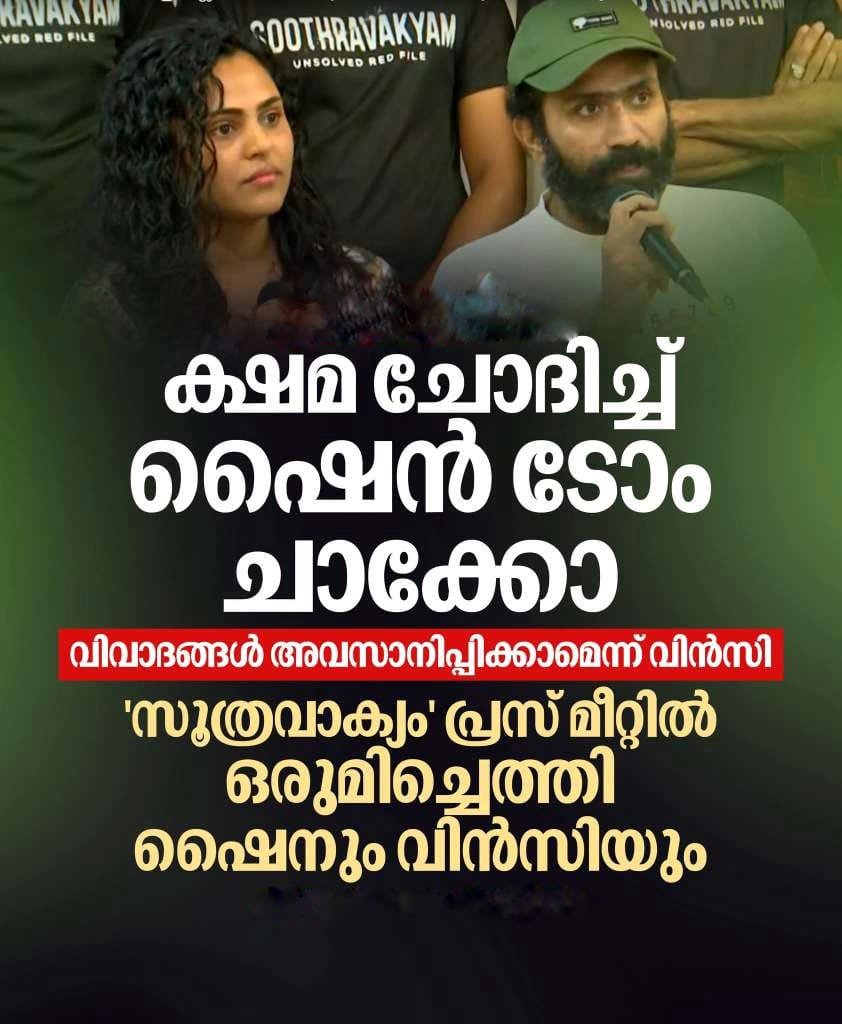 പരസ്യമായി മാപ്പ് പറഞ്ഞ് ഷൈൻ ടോം ചാക്കോ നടി വിൻസിയോട്