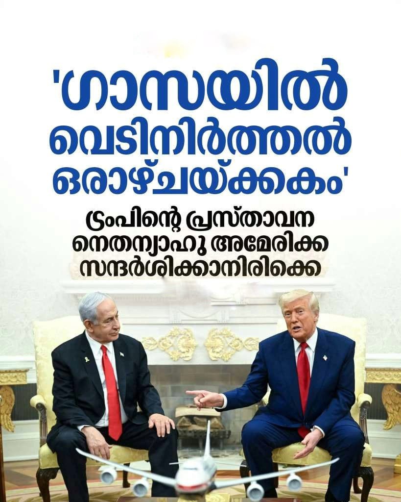 ഇതിനിടെ ബെഞ്ചമിൻ നെതന്യാഹു ട്രംപുമായുള്ള കൂടിക്കാഴ്ചയ്ക്കായി അമേരിക്കയിലേയ്ക്ക് തിരിച്ചു