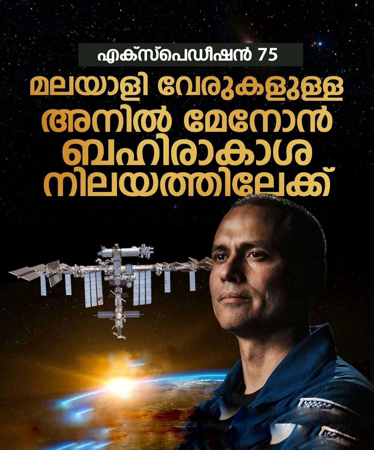ശാസ്ത്രലോകത്തിന്റെ ബഹിരാകാശ പരീക്ഷണങ്ങളിൽ ഇനി മലയാളി തിളക്കവും. ചരിത്രത്തിലാദ്യമായി കേരളത്തിൽ കുടുംബവേരുകളുള്ളയാൾ ബഹിരാകാശത്തേയ്ക്ക് പോകുന്നു. അമേരിക്കൻ വ്യോമസേനാ അംഗവും സ്പേസ് എക്സ് കമ്പനിയുടെ ഡയറക്ടറുമായ ഡോക്ടർ അനിൽ മേനോനാണ് അടുത്ത വർഷം ബഹിരാകാശ നിലയത്തിലെത്തുക. എക്സ്പെഡീഷൻ 75 എന്ന ദൗത്യത്തിൽ സോയൂസ്…