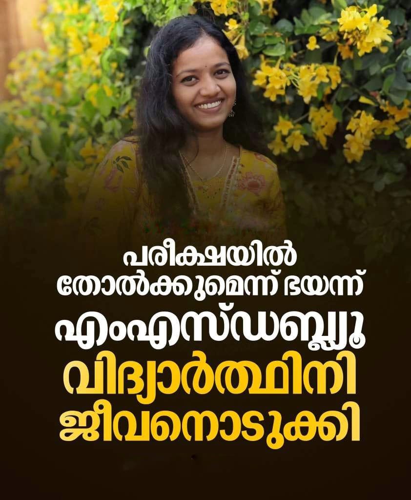 പരീക്ഷയില് തോല്ക്കുമെന്ന് ഭയന്ന് എംഎസ്ഡബ്ല്യൂ വിദ്യാര്ത്ഥിനി ജീവനൊടുക്കി