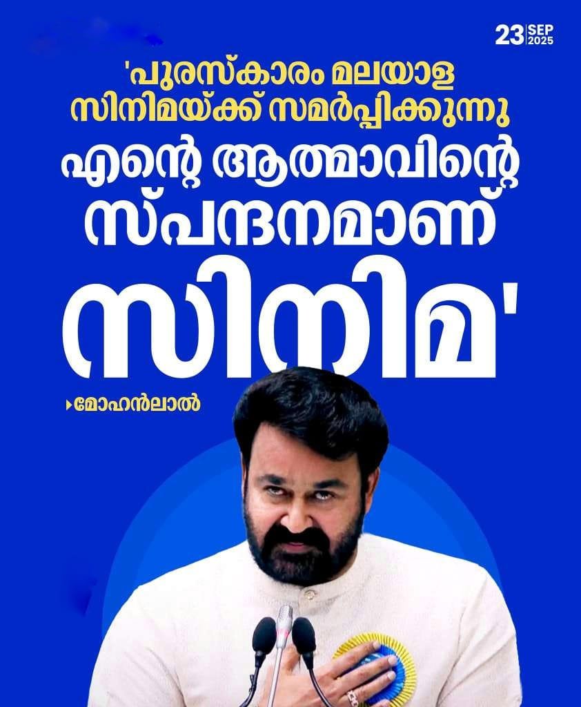 ദാദാസാഹേബ് ഫാൽക്കെ പുരസ്കാരം ഏറ്റുവാങ്ങിയതിന് ശേഷം സംസാരിക്കുകയായിരുന്നു മോഹൻലാൽ. പുരസ്കാരം മലയാള സിനിമക്കും, പ്രേക്ഷകർക്കും സമർപ്പിക്കുകയാണ്. കേന്ദ്രസർക്കാരിന് നന്ദിയുണ്ടെന്നും മോഹൻലാൽ പറഞ്ഞു.2023ലെ പരമോന്നത പുരസ്ക്കാരമാണ് മോഹൻലാലിന് ലഭിച്ചിരിക്കുന്നത്.