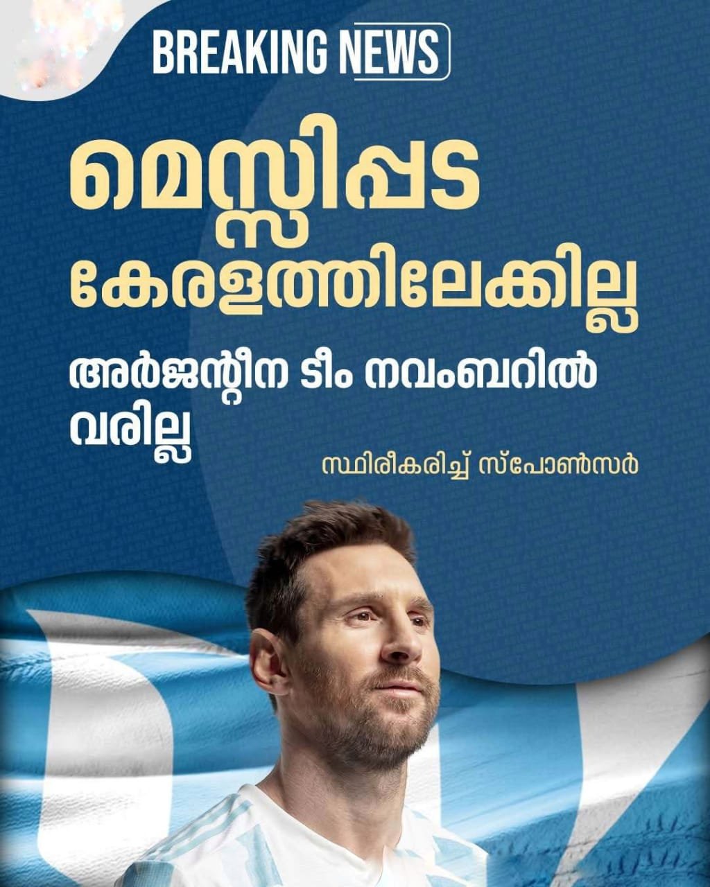 നവംബർ 17ന് അർജന്റീന കൊച്ചിയിൽ കളിക്കും എന്നായിരുന്നു സർക്കാരും സ്പോൺസറും പറഞ്ഞത്. അതേസമയം, മാർച്ചിൽ മെസ്സി വരുമെന്ന് സ്പോൺസർ പറയുന്നു. എന്നാല്, മാർച്ചിൽ വരേണ്ടെന്നാണ് സർക്കാരും സ്പോൺസറും ഇതുവരെ പറഞ്ഞിരുന്നത്.
