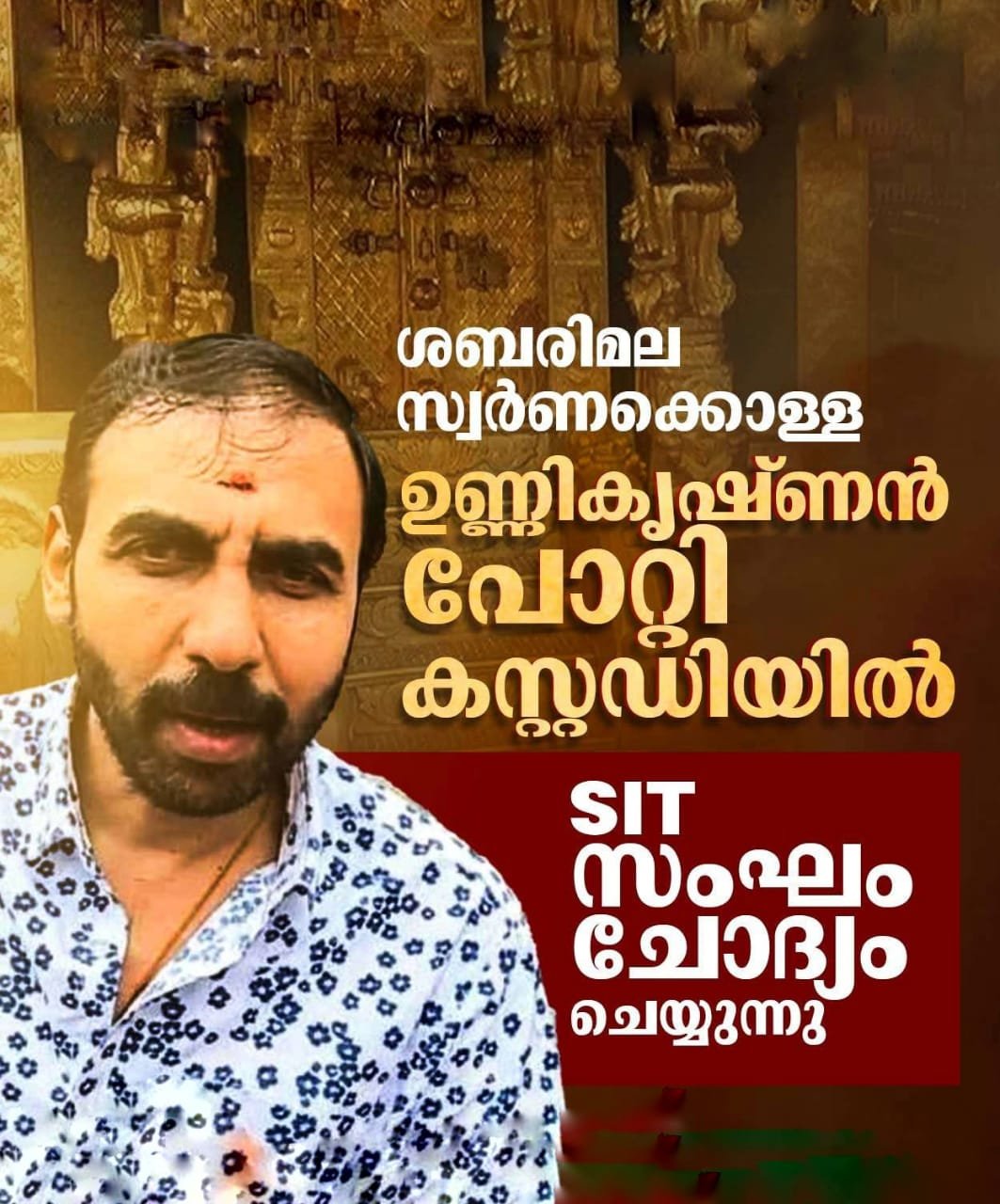 പോറ്റി ചോദ്യമുനയിൽ, നിർണായക വഴിത്തിരിവ് ശബരിമല സ്വർണക്കൊള്ളയിൽ നടപടി ഉണ്ണികൃഷ്ണൻ പോറ്റി കസ്റ്റഡിയിൽ
