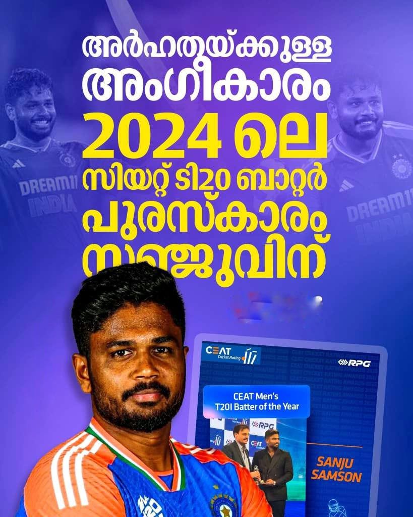 2024 ലെ സിയറ്റ് ടി20 ബാറ്റര് പുരസ്കാരം സഞ്ജുവിന് വരുൺ മികച്ച ബൗളർ
