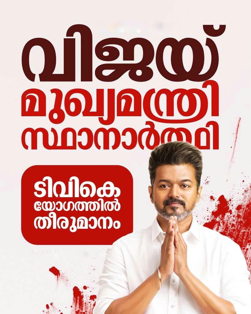 ഇതിനെല്ലാം വിരാമമിട്ടുകൊണ്ടാണ് ടിവികെ മുഖ്യമന്ത്രി സ്ഥാനാര്ത്ഥി.ചെന്നൈ: തമിഴക വെട്രി കഴകത്തിന്റെ മുഖ്യമന്ത്രി സ്ഥാനാര്ത്ഥിയായി വിജയ്യെ തീരുമാനിച്ചു. മഹാബലിപുരത്ത് ചേര്ന്ന ടിവികെ ജനറല് കൗണ്സിലാണ് മുഖ്യമന്ത്രി സ്ഥാനാര്ത്ഥിയായി വിജയ്യെ തീരുമാനിച്ചുകൊണ്ടുള്ള പ്രമേയം പാസാക്കിയത്.