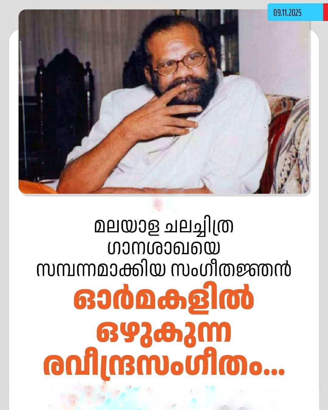 1979-ൽ ‘ചൂള’ എന്ന ചിത്രത്തിലൂടെ രവീന്ദ്രൻ മാസ്റ്ററിന്റെ സംഗീതം മലയാളികൾ കേട്ടു. സത്യൻ അന്തിക്കാട് രചിച്ച ‘താരകേ മിഴിയിതളിൽ കണ്ണീരുമായി’ എന്നു തുടങ്ങുന്ന ഗാനമാണ് അദ്ദേഹം ചിട്ടപ്പെടുത്തിയ ആദ്യ സിനിമാ ഗാനം. പിന്നീട് തിരിഞ്ഞു നോക്കേണ്ടി വന്നിട്ടില്ല.