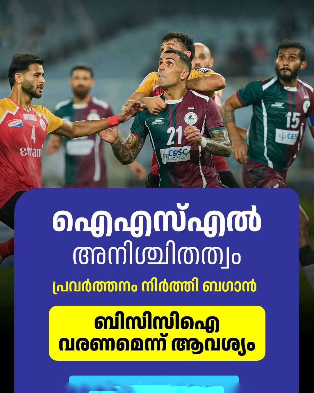 ന്യൂഡൽഹി ∙ സ്പോൺസറെ കിട്ടാതെ ഇന്ത്യൻ സൂപ്പർ ലീഗ് ഫുട്ബോൾ (ഐഎസ്എൽ) അനിശ്ചിതത്വത്തിലായതിനു പിന്നാലെ ക്ലബ്ബുകളുടെ പ്രവർത്തനങ്ങളിലും ഗുരുതര പ്രതിസന്ധി. നിലവിലെ ഐഎസ്എൽ ചാംപ്യന്മാരായ കൊൽക്കത്ത മോഹൻ ബഗാൻ സൂപ്പർ ജയന്റ്സ് ക്ലബ്ബിന്റെ എല്ലാ പ്രവർത്തനങ്ങളും അനിശ്ചിത കാലത്തേക്കു നിർത്തിവച്ചു.