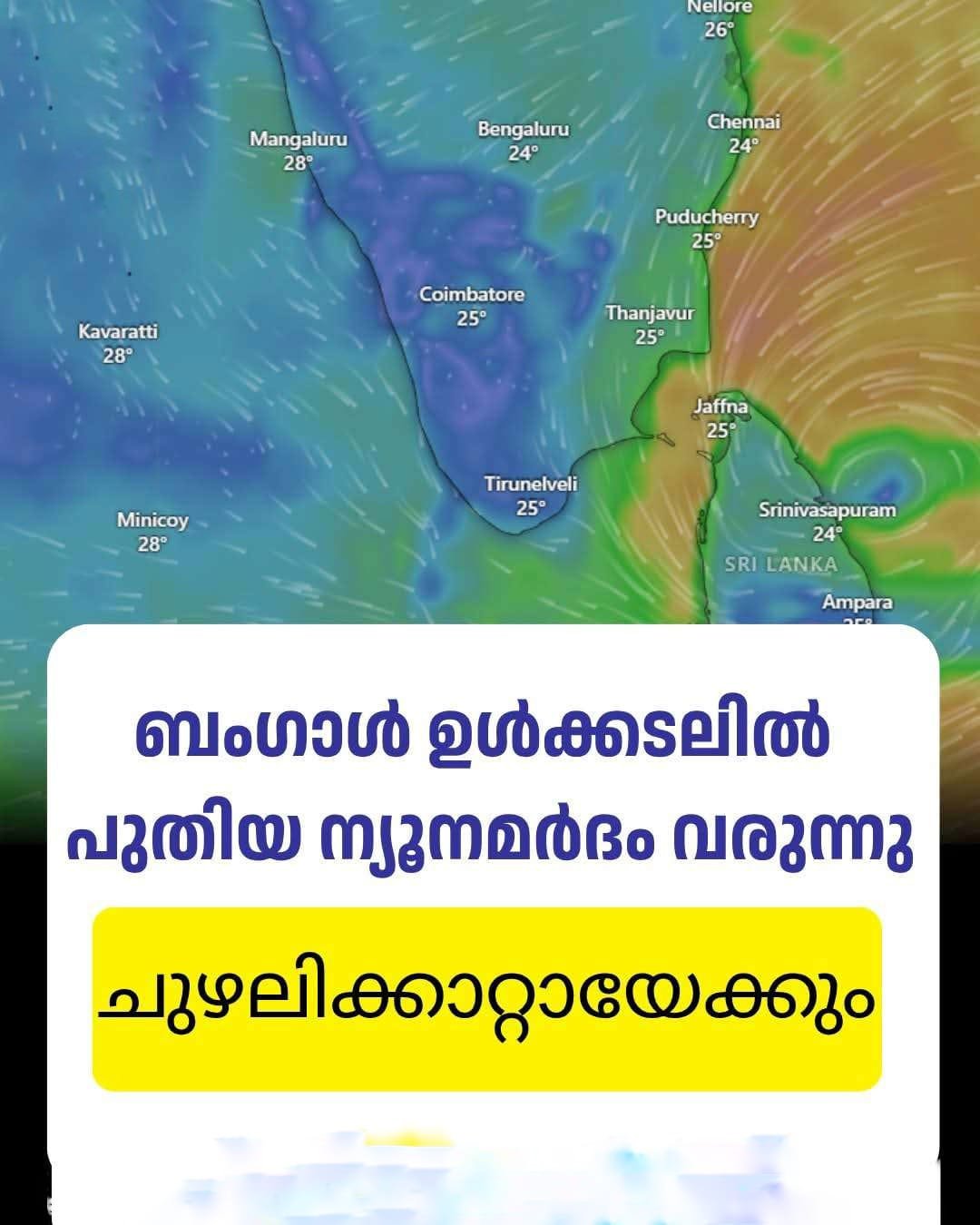 ഈ സിസ്റ്റം തമിഴ്നാട്ടിലും കേരളത്തിലും മഴ നല്കുമെന്നാണ് പ്രാഥമിക സൂചനകള്. ഈ ന്യൂനമര്ദം ശക്തിപ്പെടാനും ചുഴലിക്കാറ്റിലേക്ക് എത്താനുമുള്ള സാധ്യത ഇപ്പോള് തള്ളിക്കളയാനാകില്ല.