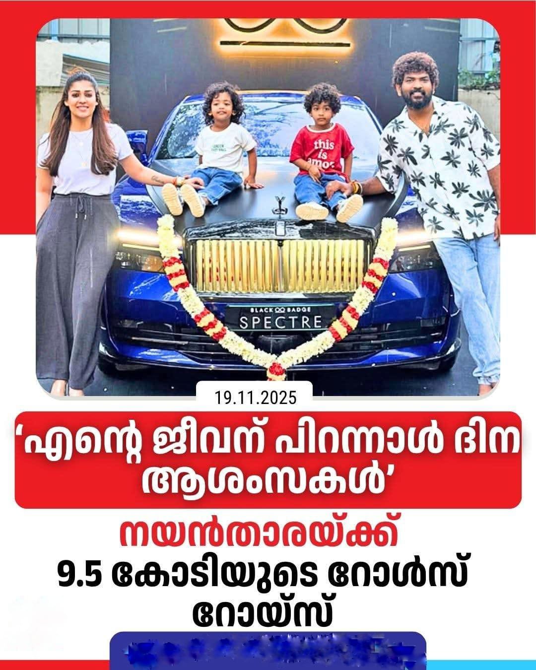 ജന്മദിനാശംസകൾ എന്ന് അടിക്കുറിപ്പോടെ പുതിയ വാഹനത്തിനൊപ്പം നയൻതാരയും മക്കളായ ഉയിരും ഉലകും വിഘ്നേഷും നിൽക്കുന്ന ചിത്രവും പങ്കുവച്ചിട്ടുണ്ട്.
