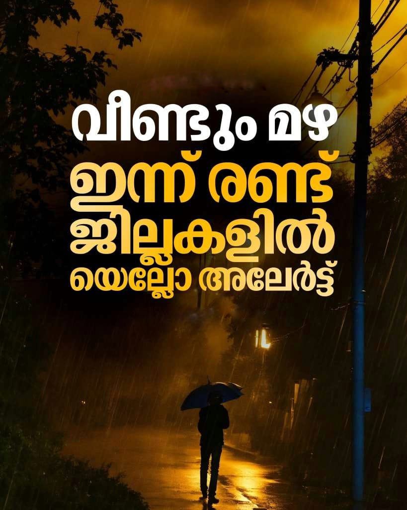 തിരുവനന്തപുരം, കൊല്ലം, പത്തനംതിട്ട, ഇടുക്കി ജില്ലകളിലാണ് യെല്ലോ അലേര്ട്ട്. നവംബര് 22-ന് പത്തനംതിട്ട, കോട്ടയം, ഇടുക്കി ജില്ലകളിലും 23-ന് തിരുവനന്തപുരം, കൊല്ലം, പത്തനംതിട്ട ജില്ലകളിലുമാണ് യെല്ലോ അലേര്ട്ട് പ്രഖ്യാപിച്ചിരിക്കുന്നത്.