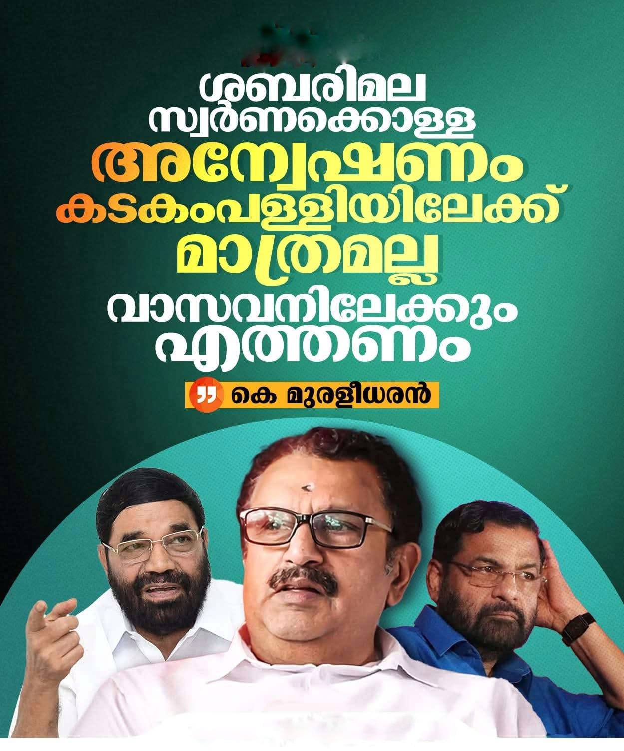 ശബരിമല സ്വര്ണക്കൊള്ളയില് കടകംപള്ളി സുരേന്ദ്രനിലേക്ക് മാത്രമല്ല, ദേവസ്വംമന്ത്രി വി എന് വാസവനിലേക്കും അന്വേഷണം എത്തണമെന്ന് കോണ്ഗ്രസ് നേതാവ് കെ മുരളീധരന്. എ പത്മകുമാറിന് പിന്നില് സിപിഐഎം ആണെന്നും കെ മുരളീധരന് പറഞ്ഞു.