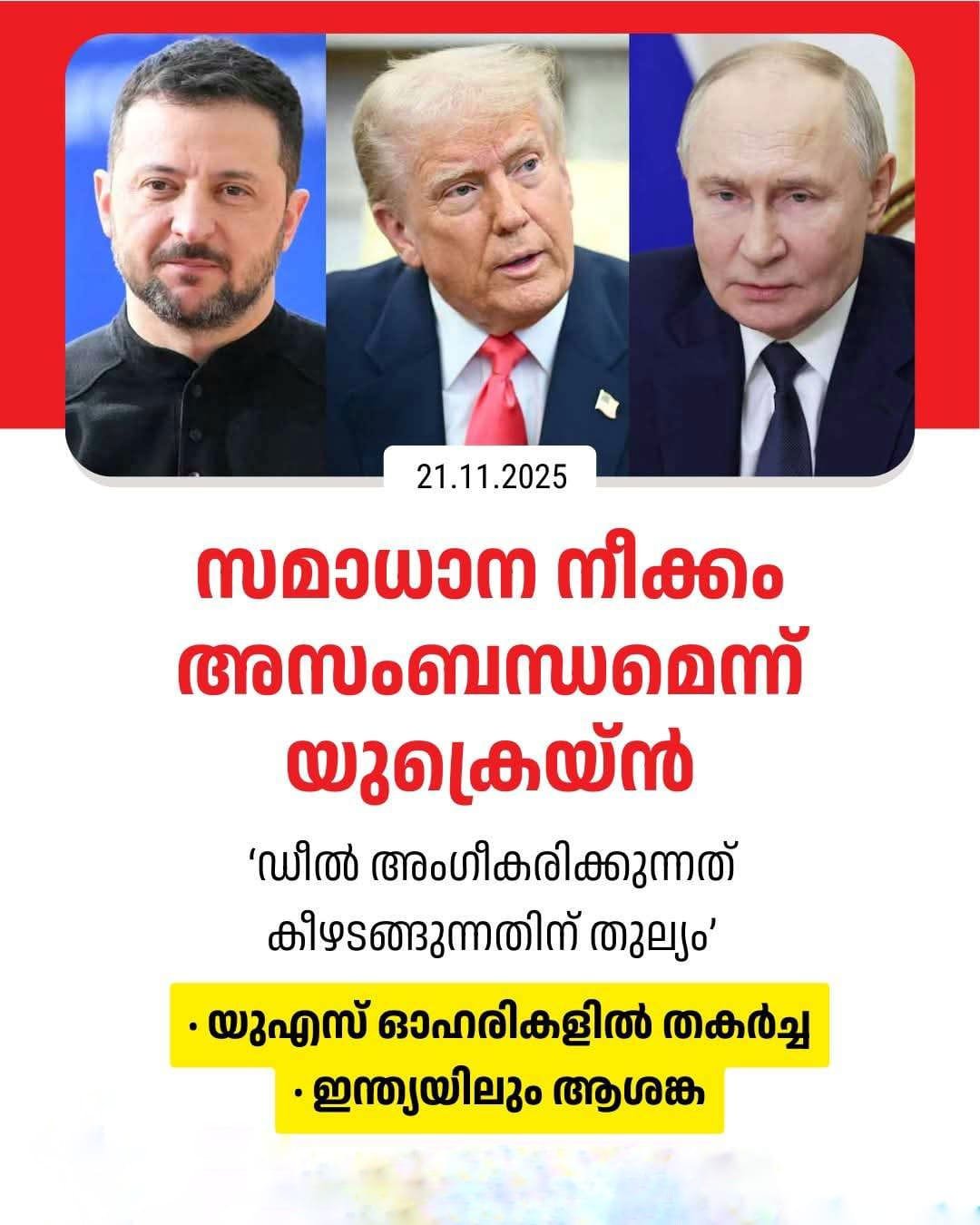 യുക്രെയ്നുമായി സംസാരിക്കാതെ, റഷ്യയുടെ താൽപ്പര്യമനുസരിച്ചുള്ള ഡ‍ീലാണ് യുഎസ് തയാറാക്കിയത്. അത് അംഗീകരിച്ചാൽ റഷ്യ ആഗ്രഹിക്കുന്നതു പോലെ ഡോൺബാസ് യുക്രെയ്ൻ വിട്ടുകൊടുക്കേണ്ടി വരും.