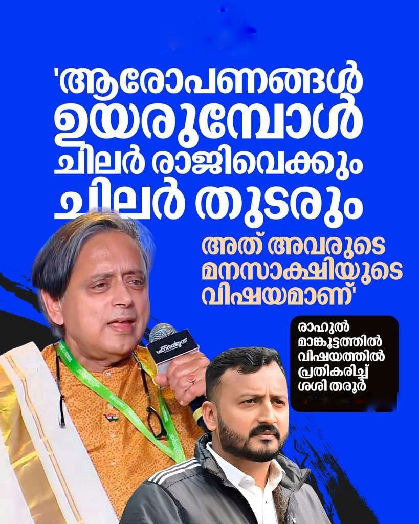 ആരോപണങ്ങള് ഉയരുമ്പോള് ചിലര് രാജിവെക്കും, ചിലര് തുടരുമെന്ന് ശശി തരൂര് പറഞ്ഞു. അത് അവരുടെ മനഃസാക്ഷിയുടെ വിഷയമാണ്. കൂടുതല് രാഷ്ട്രീയ വിവാദങ്ങള് ഉണ്ടാക്കാന് താല്പര്യമില്ലെന്നും അദ്ദേഹം പറഞ്ഞു. മലയാള മനോരമയുടെ ഹോര്ത്തുസില് സംസാരിക്കുകയായിരുന്നു എംപി.