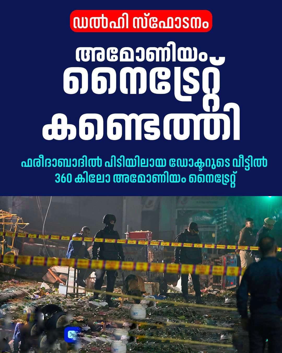 ചെങ്കോട്ട സ്ഫോടനത്തിന് അമോണിയം നൈട്രേറ്റ് ഉപയോഗിച്ചോ ഉമറിന്റെ കുടുംബാംഗങ്ങള് കസ്റ്റഡിയില്