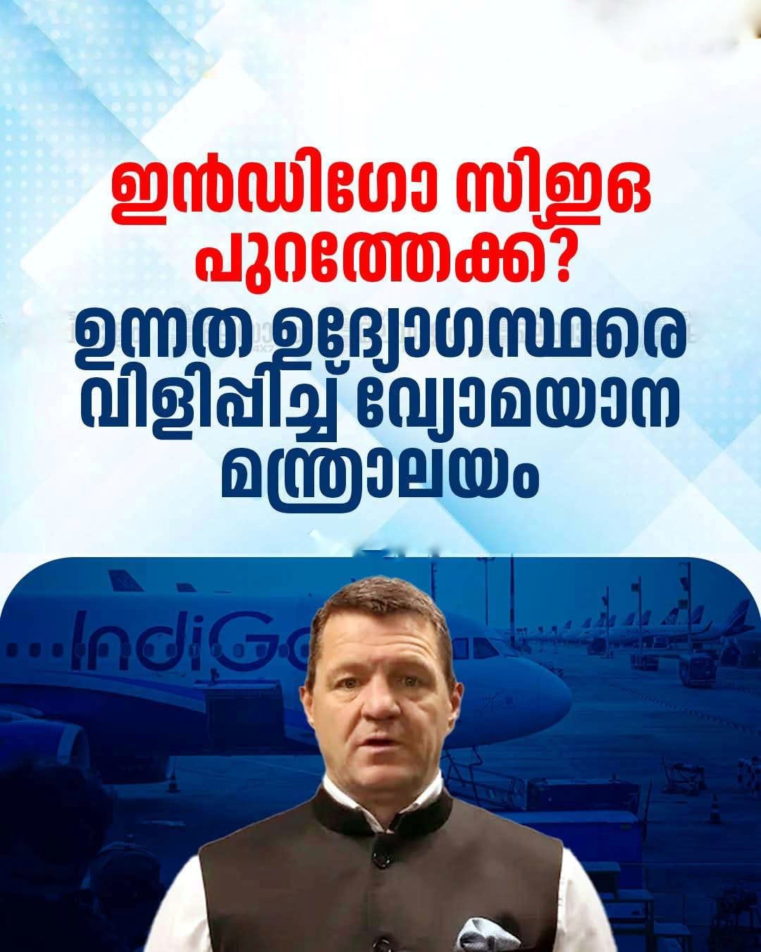 ന്യൂഡല്‍ഹി: രാജ്യവ്യാപകമായി സര്‍വീസുകള്‍ താളംതെറ്റിയതിനു പിന്നാലെ അപൂര്‍വ നടപടിക്കൊരുങ്ങി കേന്ദ്രം. ഇന്‍ഡിഗോ സിഇഒ പീറ്റര്‍ എല്‍ബേര്‍സിനെ നീക്കം ചെയ്യുമെന്ന് സൂചന. ഇതിന്റെ വ്യാപകമായി ഇന്‍ഡിഗോ ഉന്നത ഉദ്യോഗസ്ഥരോട് ഹാജരാകാന്‍ കേന്ദ്ര വ്യോമയാന മന്ത്രാലയം ആവശ്യപ്പെട്ടിട്ടുണ്ട്.