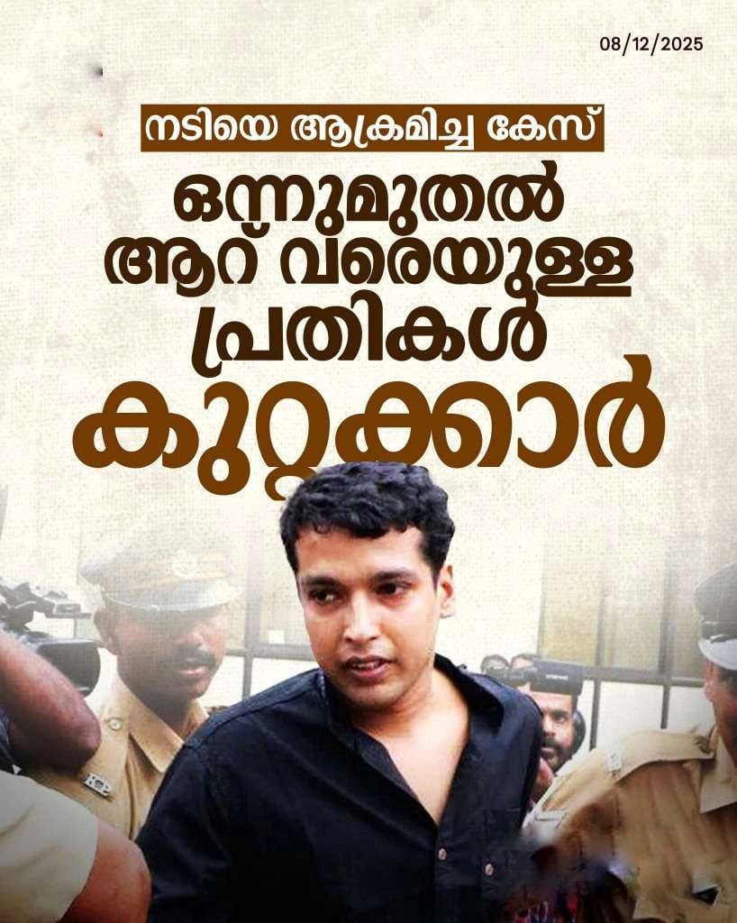 കൊച്ചി: നടിയെ ആക്രമിച്ച കേസിൽ ഒന്ന് മുതൽ ആറ് വരെയുള്ള പ്രതികൾ കുറ്റക്കാർ. എട്ടാം പ്രതി ദിലീപിനെ വെറുതെ വിട്ടു.  എറണാകുളം പ്രിന്‍സിപ്പല്‍ സെഷന്‍സ് കോടതിയുടേതാണ് വിധി. പ്രിന്‍സിപ്പല്‍ സെഷന്‍സ് ജഡ്ജി ഹണി എം. തോമസാണ് വിധി പുറപ്പെടുവിച്ചത്.