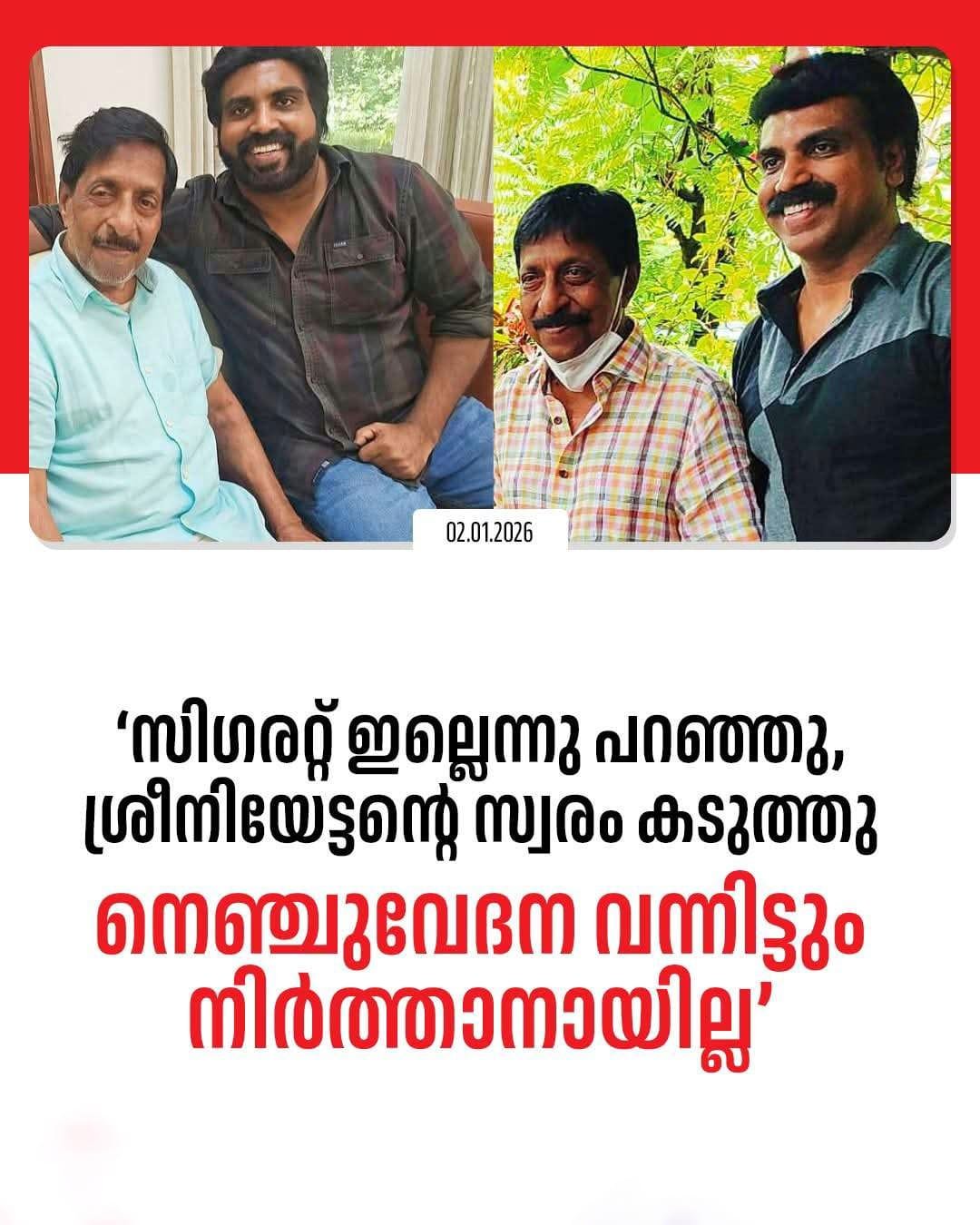 കഥ പറഞ്ഞു തുടങ്ങുന്നതിന് മുൻപ് സിഗരറ്റ് പാക്കറ്റ് നീട്ടി ‘ഒന്ന് വലിച്ചോ, എന്നിട്ട് പറഞ്ഞാൽ മതി’ എന്ന് ശ്രീനിവാസൻ പറഞ്ഞത് അവരുടെ സൗഹൃദത്തിന്റെ തുടക്കമായിരുന്നുവെന്ന് കുറിപ്പ് വ്യക്തമാക്കുന്നു.