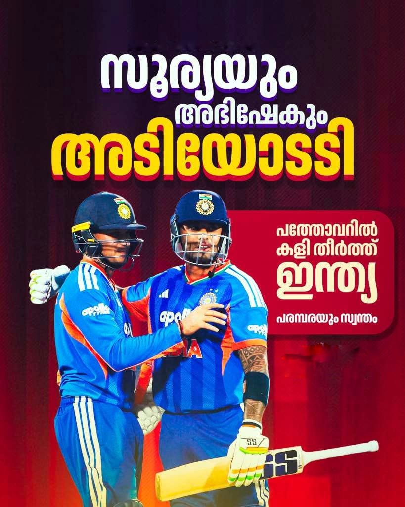 ക്യാപ്റ്റൻ സൂര്യകുമാർ യാദവും (26 പന്തിൽ 57) അഭിഷേക് ശർമയും (20 പന്തിൽ 68) അർധസെഞ്ചുറികളുമായി തിളങ്ങി. ഇരുവരുടെയും തകർപ്പൻ പ്രകടനമാണ് ഇന്ത്യയെ വേഗത്തിൽ വിജയത്തിലെത്തിച്ചത്.