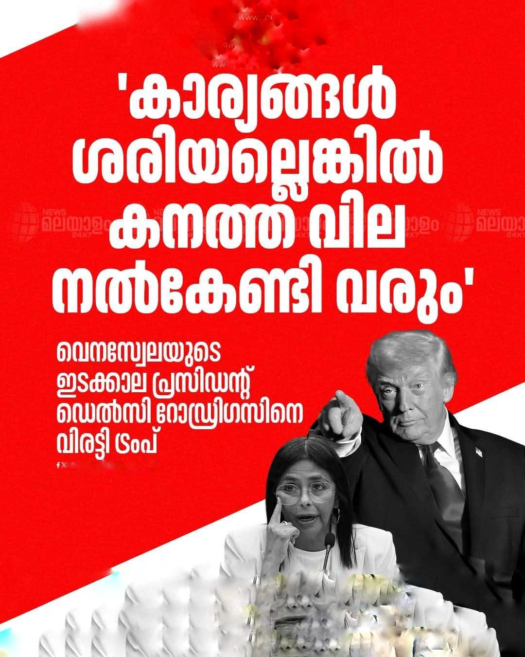 2026 ജനുവരി 6-ന് വെനസ്വേലൻ തലസ്ഥാനമായ കാരക്കാസിലെ മിറാഫ്ലോറസ് പ്രസിഡൻഷ്യൽ കൊട്ടാരത്തിന് സമീപം വീണ്ടും ശക്തമായ ആക്രമണം നടന്നതായി റിപ്പോർട്ട്. പ്രദേശത്ത് വലിയ വെടിയൊച്ചകൾ കേട്ടതായും നഗരത്തിന്റെ പല ഭാഗങ്ങളിലും വൈദ്യുതി ബന്ധം വിച്ഛേദിക്കപ്പെട്ടതായും അന്താരാഷ്ട്ര മാധ്യമങ്ങൾ റിപ്പോർട്ട് ചെയ്യുന്നു. പ്രസിഡന്റ്…
