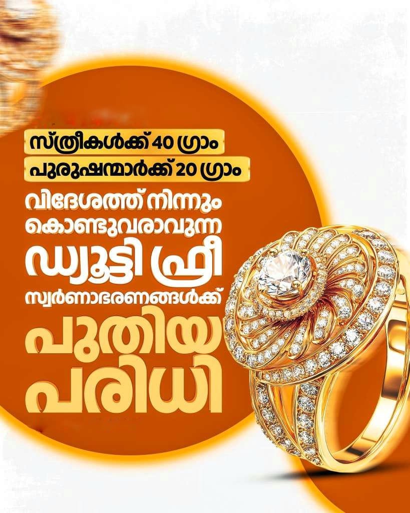 എന്നാൽ ഈ ഇളവ് ആഭരണങ്ങൾക്ക് മാത്രമാണ്, സ്വർണ്ണ ബാറുകൾക്കോ നാണയങ്ങൾക്കോ ഇത് ബാധകമല്ല. കൂടാതെ, 18 വയസ്സിന് മുകളിലുള്ളവർക്ക് ഒരു പുതിയ ലാപ്ടോപ്പോ നോട്ട്പാഡോ നികുതിയില്ലാതെ കൊണ്ടുവരാം. വിദേശ വിനോദസഞ്ചാരികൾക്ക് 25,000 രൂപ വരെയുള്ള സാധനങ്ങൾക്ക് ഇളവ് ലഭിക്കും. വിമാനത്താവളങ്ങളിലെ പരിശോധനകൾ ലഘൂകരിക്കാൻ ലക്ഷ്യമിട്ട് സജ്ജമാക്കുന്ന ഡിജിറ്റൽ സെൽഫ് ഡിക്ലറേഷൻ പോർട്ടൽ യാത്രക്കാർക്ക് വലിയ ഉപകാരപ്രദമാകും.