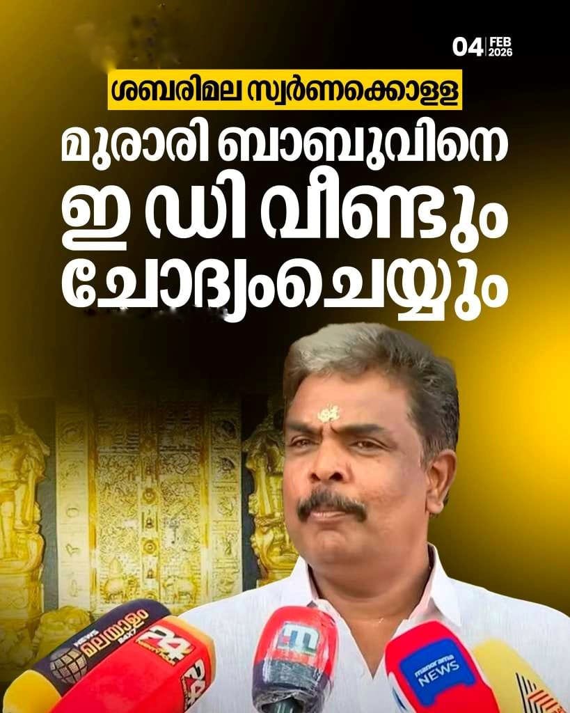 ശബരിമല സ്വർണ്ണക്കൊള്ളക്കേസിൽ മുരാരി ബാബുവിനെ എൻഫോഴ്സ്മെന്റ് ഡയറക്ടറേറ്റ് (ഇ.ഡി) വീണ്ടും ചോദ്യം ചെയ്യും. 2019-2025 കാലയളവിൽ ഇദ്ദേഹത്തിന്റെ സ്വത്തുക്കളിലുണ്ടായ വൻ വർധനയും സാമ്പത്തിക ഇടപാടുകളിലെ ദുരൂഹതയുമാണ് അന്വേഷണത്തിന് കാരണം. ശബരിമലയുമായി ബന്ധപ്പെട്ട ക്രമക്കേടുകളിലൂടെ സമ്പാദിച്ച പണം ഉപയോഗിച്ചാണോ പുതിയ വീട് നിർമ്മിച്ചതെന്നതടക്കമുള്ള കാര്യങ്ങൾ ഇ.ഡി പരിശോധിക്കുന്നുണ്ട്.