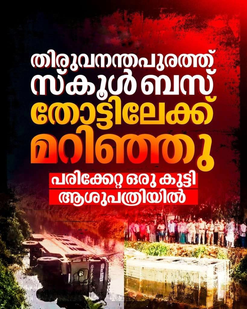 തിരുവനന്തപുരം പൂവത്തൂർ സർക്കാർ സ്കൂളിലെ ബസ് വണ്ടിത്തടം റൂട്ടിൽ തോട്ടിലേക്ക് മറിഞ്ഞു.